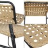 Miza ima dvignjen rob, ki ne le ustvarja elegantne poudarke, temveč tudi preprečuje, da bi predmeti padali dol ob premikanju ali vetru. Oba stola izstopata s svojim zračno lahkotnim dizajnom pletenja in nudita popolno udobje za ure preživete na prostem.